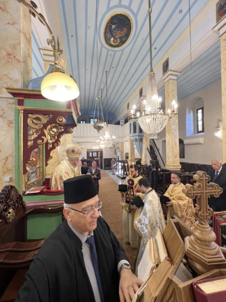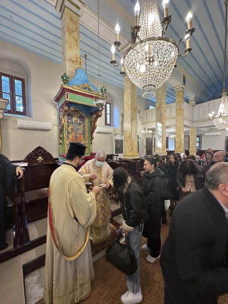 Στο αναλόγιο έψαλλαν ο Άρχων Ιερομνήμων της Αγίας του Χριστού Μεγάλης Εκκλησίας και Άρχων Πρωτοψάλτης της Ιεράς Μητρόπολης Δέρκων κ. Αντώνιος Χατζόπουλος, η Ιεροψάλτρια του Ιερού Ναού κα. Ιωάννα Γρηγοριάδου καθώς και οι εξ Ελλάδος Ιεροψάλτες κ. Βασίλειος Μελισσουργός και κ. Ιωάννης Τριανταφυλλόπουλος, οι οποίοι βρίσκονταν στην Πόλη για την παρελθούσα θρονική εορτή του Αγίου Αποστόλου Ανδρέου.