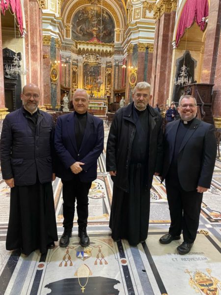 Μετά την Θεία Λειτουργία στα Ουκρανικά τέλεσε επιμνημόσυνη δέηση για τα θύματα του τριετούς ρωσοουκρανικού πολέμου. Στη συνέχεια μετέβη στην κεντρική πλατεία της Βαλέτας και ομίλησε σε εκδήλωση των Ουκρανών της Μάλτας ευχηθείς τη λήξη του πολέμου και την επικράτηση της ειρήνης.