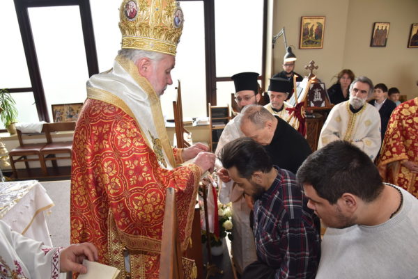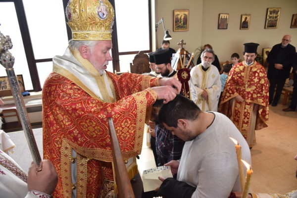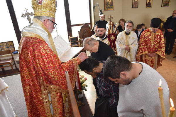 Πριν το τέλος της Θείας Λειτουργίας, ο Σεβασμιώτατος χειροθέτησε τρεις νέους αναγνώστες οι οποίοι διακονούν στην Ενορία, τον κ. Κωνσταντῖνο Σαρίκα, τον κ. Παύλο de Ryck και τον κ. Νικόλαο Λύκο.