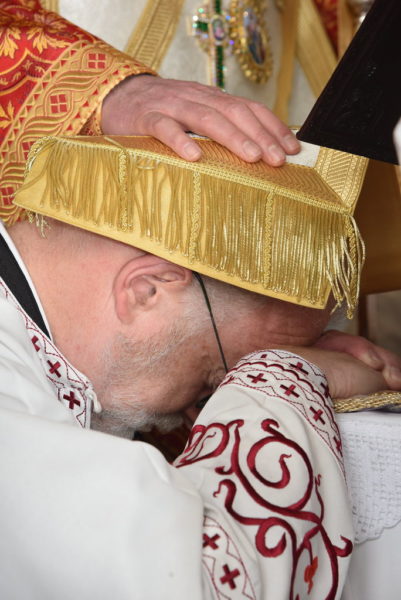 Ο Σεβασμιώτατος κατά τον λόγο του προς τον χειροτονούμενο, αναφερόμενος στην διακονία του κληρικού ως μαρτυρία του Λόγου της αληθείας , μεταξύ άλλων είπε τα εξής: «Κατά την λαμπροφόρον ταύτην πασχαλινήν περίοδον, ίστασαι και πάλιν ενώπιόν μου διά να λάβης, διά της Θείας Χάριτος και της επιθέσεως των αναξίων χειρών μου, τον δεύτερον βαθμόν της ιερωσύνης… Μολονότι τώρα γίνεσαι ιερεύς, η διακονία θα παραμείνη μία σταθερά αξία της ζωής σου, διότι όλοι είμεθα κεκλημένοι να είμεθα οι διάκονοι πάντων. (…) Από της σήμερον καλείσαι, με τας ευλογίας του επισκόπου σου και τας προσευχάς όλων των παρόντων κληρικών και λαικών, να υπηρετής τον λαόν του Θεού κατά τρεις τρόπους, δηλαδή διά της χορηγήσεως των ιερών μυστηρίων, διά της διδασκαλίας σου και διά της θεραπείας. Πράγματι, οι τρεις τούτοι πόλοι είναι στενώς συνδεδεμένοι. Χάρις εις την Ορθόδοξον διδασκαλίαν και την διαφύλαξιν τως ιερών δογμάτων, ο άνθρωπος δύναται να εύρη την θεραπείαν του και ακολούθως, όντας τεθεραπευμένος, να ημπορή να μετέχη εις το Ιερόν Μυστήριον το οποίον οδηγεί εις την κάθαρσιν, εις τον φωτισμόν και εις την τελειότητα».