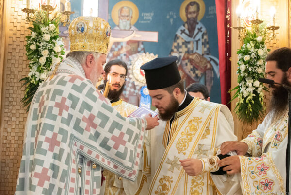 «Ἡ παροῦσα στιγµὴ εἶναι πραγµατικὰ σηµαντικὸς σταθµὸς στὴ ζωή σου. Εἶναι µεγάλης σηµασίας καὶ µπορεῖ νὰ σοῦ προκαλέσῃ φόβο. Σὲ λίγο θὰ εἰσέλθης στὰ Ἅγια τῶν Ἁγίων. Τὸ βουνὸ ποὺ ὑψώνεται µπροστά σου εἶναι ψηλό: εἶναι ἡ ἱερωσύνη. Θὰ ἀνέβης µέχρι τοὺς οὐρανούς. Ἀπὸ τώρα καὶ στὸ ἑξῆς, δὲν θὰ ὁµιλεῖς µόνον µὲ τοὺς ἀνθρώπους, ἀλλὰ καὶ µὲ τοὺς ἀγγέλους…Μία µεγάλη εὐθύνη σύντοµα θὰ βαρύνῃ τοὺς ὥµους σου. Εἶναι εἰδικὴ ἀποστολή, πολὺ ἀγαπητὴ στὸν Θεό. Γι´αὐτὸ θὰ τὴν ἀναλάβῃς µὲ φόβο Θεοῦ. Σὲ ἀκούω νὰ ἐπαναλαµβάνῃς τὰ λόγια τοῦ Μωϋσῆ, ποὺ ἔλεγε: «Κύριε, οὐχ ἱκανός εἰµι πρὸ τῆς χθές, οὐδὲ πρὸ τῆς τρίτης ἡµέρας, οὐδὲ ἀφ´ οὗ ἤρξω λαλεῖν τῷ θεράποντί σου· ἰσχνόφωνος καὶ βραδύγλωσσος ἐγὼ εἰµί» (Ἔξ. 4, 10). Καὶ ἀκούω τὴν φωνὴ τοῦ Κυρίου ποὺ τοῦ εἶπε: «Καὶ νῦν πορεύου, καὶ ἐγὼ ἀνοίξω τὸ στόµα σου, καὶ συµβιβάσω σε, ὅ µέλλεις λαλῆσαι» (Ἔξ. 4, 12). Ἀκόµη ἀκούω τὸν Κύριο νὰ λέῃ, ὅπως τὸ εἶπε ὁ Παῦλος: «Μὴ φοβοῦ, ἀλλὰ λάλει καὶ µὴ σιωπήσῃς, διότι ἐγώ εἰµι µετὰ σοῦ, καὶ οὐδεὶς ἐπιθήσεταί σοι τοῦ κακῶσαί σε, διότι λαὸς ἐστί µοι πολὺς ἐν τῇ πόλει ταύτῃ» (Πραξ. 18, 9-10). Μὴ φοβᾶσαι πλέον, γιατὶ ὁ Κύριος εἶναι µαζί σου. Εἶναι καὶ θὰ εἶναι, γιατὶ Τὸν ἀγαπᾶς µὲ ὅλη σου τὴν καρδιὰ καὶ µὲ ὅλο σου τὴν ψυχή. Εἶναι µεγάλη ἡ χαρά µου ποὺ µποροῦµε σήµερα νὰ τελοῦµε τὴν εἰς διάκονο χειροτονία σου, σ´αὐτὴ τὴν ὡραία ἐκκλησία τοῦ Ἁγίου Μάρκου τοῦ Εὐγενικοῦ, στὴν ὁποία ψάλλεις ἐδῶ καὶ µερικὰ χρόνια. Σὲ συνοδεύουν ἡ ἀγαπητή σου σύζυγος Δέσποινα, οἱ γονεῖς σου καὶ ἄλλα µέλη τῆς ἀγαπητῆς σου οἰκογενείας, ἀλλὰ ἐπίσης καὶ φίλοι σου. Θέλω νὰ συγχαρῶ ἰδιαιτέρως τὴν Δέσποινα ποὺ συµµετέχει στὴν χαρά σου καὶ στὴν χαρὰ ὁλόκληρης τῆς Ἐκκλησίας. Σύντοµα ὡς διάκονος θὰ ὑπηρετῇς στὴν Ἱερὰ Μητρόπολη Βελγίου καὶ Ἐξαρχία Κάτω Χωρῶν καὶ Λουξεµβούργου, γιὰ τὸ καλὸ ὅλων τῶν ὀρθοδόξων χριστιανῶν ποὺ διαβιοῦν ἐκεῖ. Δὲν εἶναι ἡ εὐκολώτερη ἀποστολή, ἀλλὰ ἡ πιὸ ὅµορφη! Θὰ ὑπηρετῇς πάντοτε µὲ µεγάλη εὐγνωµοσύνη πρὸς τὸ Οἰκουµενικό µας Πατριαρχεῖο, ποὺ σὲ δέχεται στὶς τάξεις του καὶ ἐπαγρυπνεῖ γιὰ τὸ καλὸ τῆς ἑνότητας τῆς Ὀρθοδοξίας παντοῦ στὸν κόσµο. Ἔφθασε ἡ ὥρα τῆς ἐκπληρώσεως τῆς ἱερῆς ἐπιθυµίας σου. Οἱ πόρτες τοῦ ἱεροῦ θυσιαστηρίου εἶναι ἀνοικτές. Πλησίασε στὴν χορεία τῶν διακόνων, τῆς ὁποίας ἐπικεφαλῆς εἶναι ἡ ἐξαιρετικὴ µορφὴ τοῦ Πρωτοµάρτυρα Στεφάνου, σὰν ἐπίγειος ἄγγελος καὶ οὐράνιος ἄνθρωπος.» ανέφερε μεταξύ άλλων ο Σεβασμιώτατος.