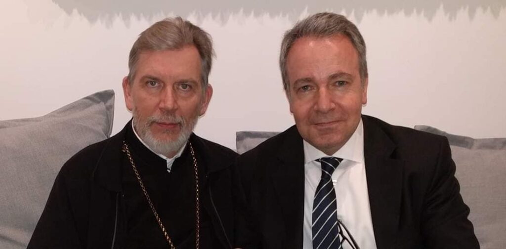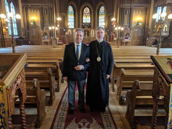 Η πρώτη συνάντηση του Σεβ. Μητροπολίτου Σουηδίας, κ. Κλεόπα, με το νέο Πρέσβυ της Ελλάδος στη Σουηδία, Εξοχ. κ. Ανδρέα Φρυγανά, πραγματοποιήθηκε την επομένη της άφιξής του στη Στοκχόλμη και συγκεκριμένα την Τετάρτη, 10 Απριλίου 2019 στο γραφείο του Μητροπολίτου, στις εγκαταστάσεις του Καθεδρικού Ναού Αγίου Γεωργίου Στοκχόλμης.