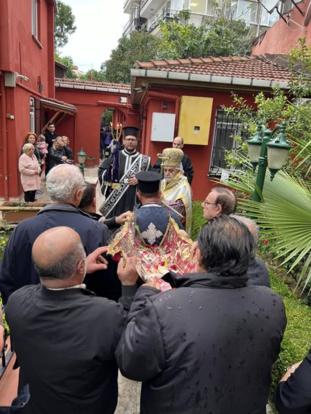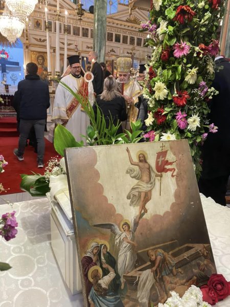 Το Μ. Σάββατο το πρωί ο Σεβασμιώτατος χοροστάτησε στην Ακολουθία της πρώτης Αναστάσεως στον Ιερό Ναό της Αγίας Παρασκευής της Κοινότητος Βαθυρρύακος, ενώ το βράδυ ιερούργησε στην Ακολουθία της Αναστάσεως στον Ιερό Ναό του Αγίου Στεφάνου στο Γεσήλκιοϊ, όπου στο τέλος μοίρασε τα πασχαλινά αυγά και παρεκάθησε στην εόρτιο δεξίωση, παρατεθείσα υπό της Εφοροεπιτροπής της Κοινότητος.