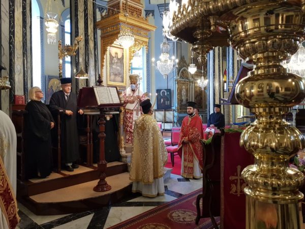 Κατά την Αρχιερατική Θεία Λειτουργία παρευρέθησαν οι Σεβασμιώτατοι Μητροπολίτες Μυριοφύτου και Περιστάσεως κ. Ειρηναίος, ως εκπρόσωπος του Α. Θειοτάτης Παναγιότητος, του Οικουμενικού Πατριάρχου κ.κ. Βαρθολομαίου, Γέρων Χαλκηδώνος κ. Εμμανουήλ, Σηλυβρίας κ. Μάξιμος, Σαράντα Εκκλησιών κ. Ανδρέας, Προύσης κ. Ιωακείμ και οι Θεοφιλέστατοι Επίσκοποι Αραβισσού κ. Κασσιανός και Τράλλεων κ. Βενιαμίν.