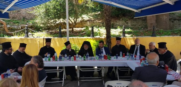 Μετά το πέρας της Θείας Λειτουργίας παρατέθηκε δεξίωση στον αυλόγυρο του περικαλλούς Ιερού Μητροπολιτικού Ναού της Αγίας Παρασκευής Θεραπείων.