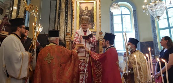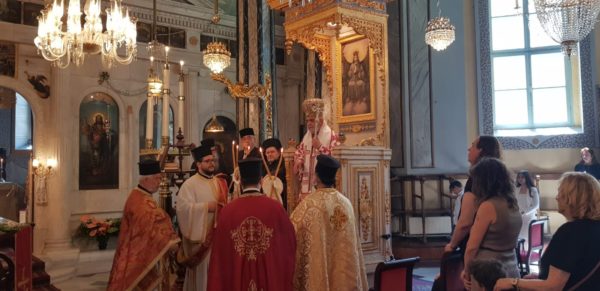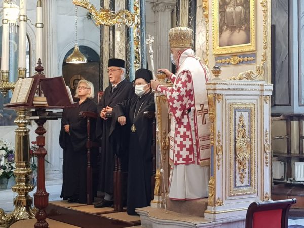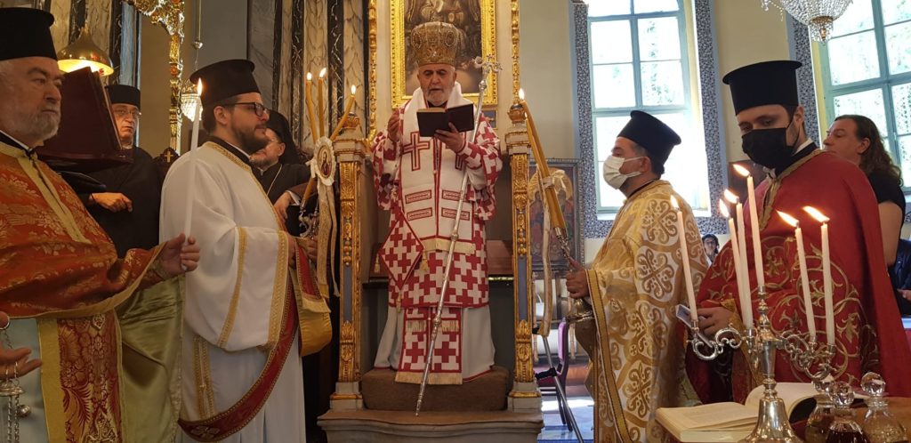 Κατά την Αρχιερατική Θεία Λειτουργία παρευρέθησαν οι Σεβασμιώτατοι Μητροπολίτες Μυριοφύτου και Περιστάσεως κ. Ειρηναίος, ως εκπρόσωπος του Α. Θειοτάτης Παναγιότητος, του Οικουμενικού Πατριάρχου κ.κ. Βαρθολομαίου, Γέρων Χαλκηδώνος κ. Εμμανουήλ, Σηλυβρίας κ. Μάξιμος, Σαράντα Εκκλησιών κ. Ανδρέας, Προύσης κ. Ιωακείμ και οι Θεοφιλέστατοι Επίσκοποι Αραβισσού κ. Κασσιανός και Τράλλεων κ. Βενιαμίν.