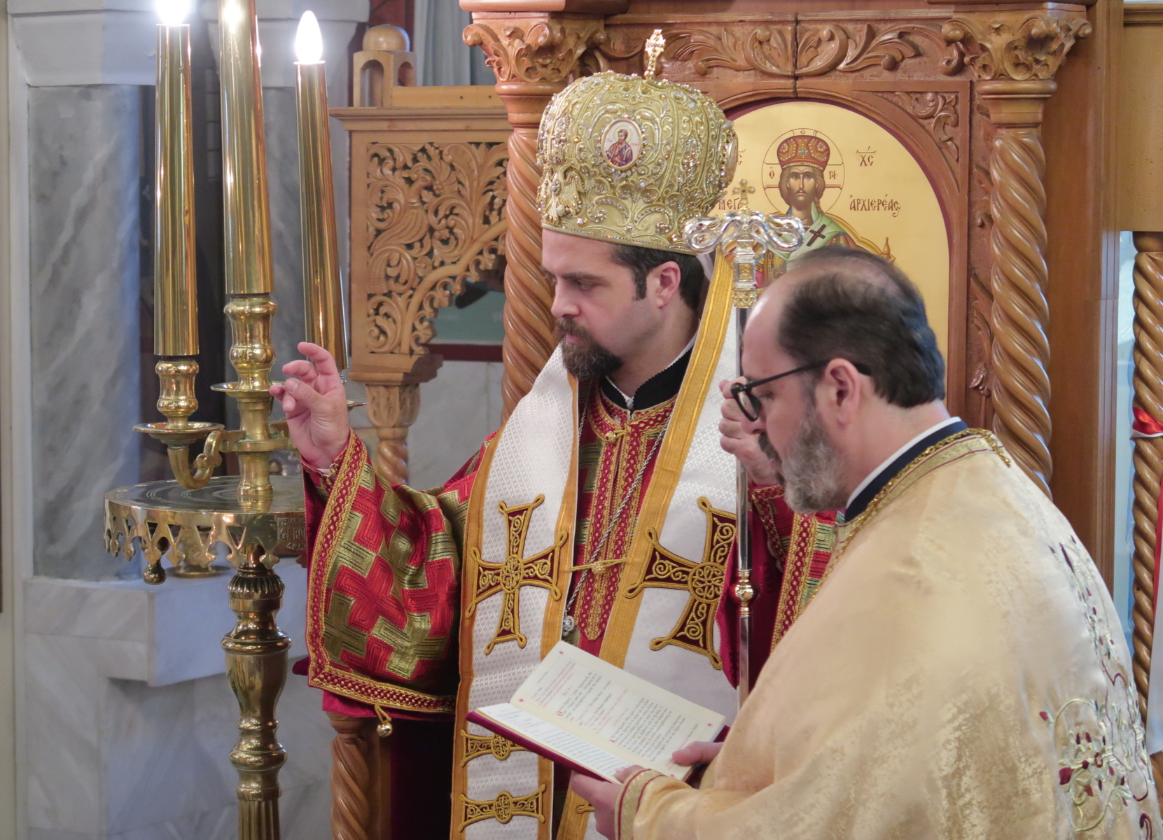 Χοροστάτησε στον Όρθρο και προεξήρχε της πανηγυρικής Θείας Λειτουργίας ο Θεοφιλέστατος Επίσκοπος Μελιτηνής κ. Μάξιμος, ο οποίος στην ομιλία του αναφέρθηκε στο μαρτύριο των Αγίων και στο μαρτύριο των σύγχρονων Χριστιανών στη Μέση και Άπω Ανατολή και στη Δυτική Αφρική. Μετέφερε τις ευχές του Σεβασμιωτάτου Μητροπολίτου Γαλλίας κ. Εμμανουήλ στο εκκλησίασμα και στον Προϊστάμενο του Ιερού Ναού π. Γεράσιμο Σκαρτσή, και τους συνεχάρη για το έργο τους σε μια αναπτυσσόμενη κοινότητα με πολλούς κατηχουμένους και έντονη δράση.