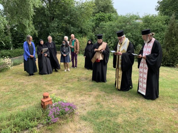 Την Πέμπτη, εορτή του Γενεθλίου του τιμίου Προφήτου, Προδρόμου και Βαπτιστού Ιωάννου και με αφορμή το Μνημόσυνο της μακαριστής Γερόντισσας Μαρίας, ιδρύτριας και πρώτης Ηγουμένης της Ιεράς Μονής Γενεθλίου της Θεοτόκου εν Άστεν Ολλανδίας, ο Σεβασμιώτατος Μητροπολίτης Βελγίου και Έξαρχος Κάτω Χωρών και Λουξεμβούργου κ. Αθηναγόρας τέλεσε την Θεία Λειτουργία στην Ιερά Μονή συλλειτουργούντων του εφημέριου της Ιεράς Μονής και διακόνων της Ιεράς Μητροπόλεως, με την συμμετοχή μόνον της αδελφότητος και ελαχίστων πιστών εξ αιτίας μέτρων προστασίας έναντι του κορωνοϊού.
