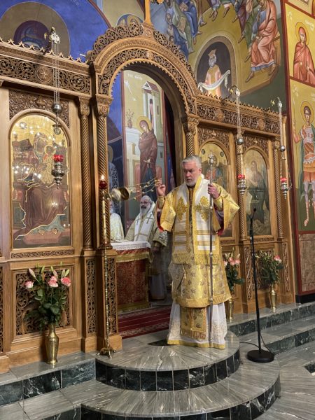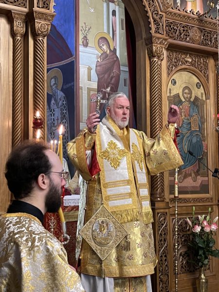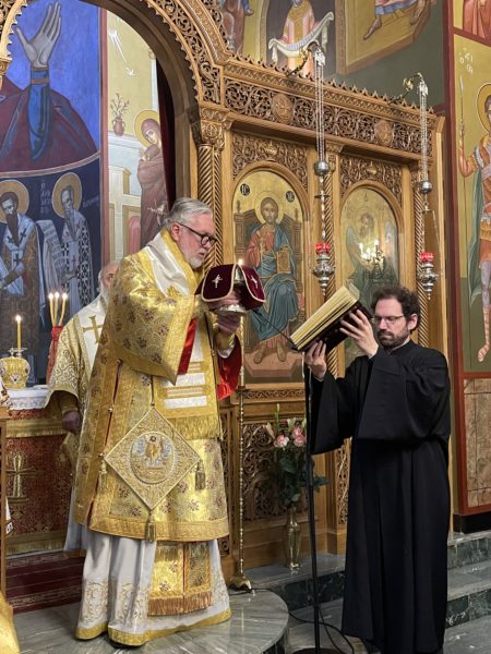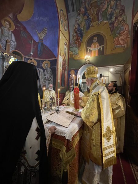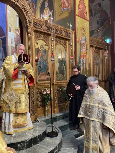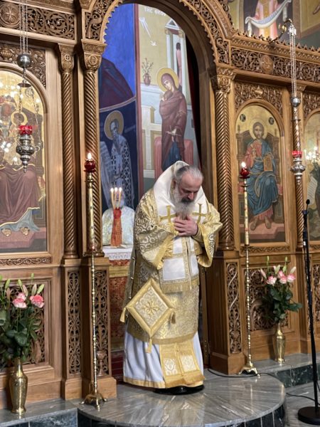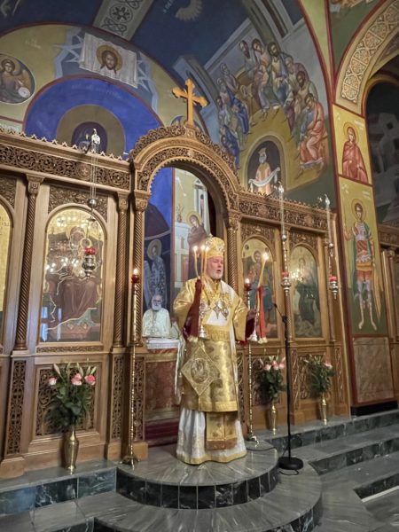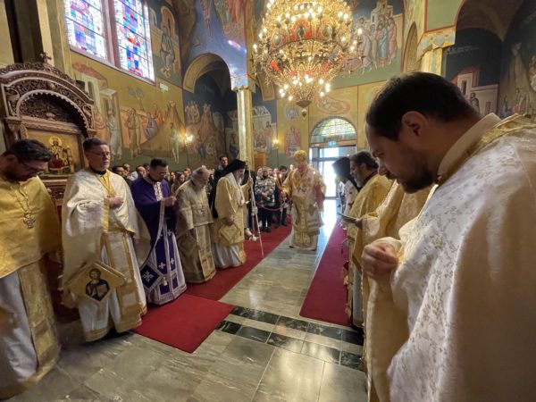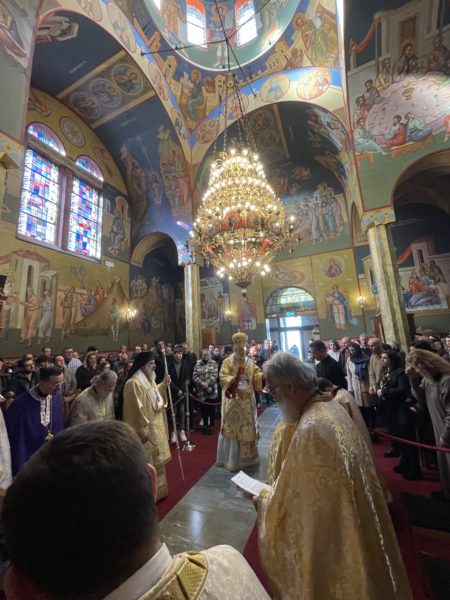 Το πρωί της ημέρας προεξήρχε της Θείας Λειτουργίας στο από ετών καθιερωμένο διορθόδοξο συλλείτουργο στον Καθεδρικό Ναό του αγίου Νικολάου στο Ρότερνταμ, συλλειτουργούντων του Θεοφιλ. Επισκόπου του Πατριαρχείου Γεωργίας κ. Δοσιθέου και του Θεοφιλ. Επισκόπου Απολλωνιάδος κ. Ιωακείμ, και με την συμμετοχή του Οσιολογιωτάτου Ιερομονάχου κ. Ιακώβου Σιμωνοπετρίτου και κληρικών της Ολλανδίας. Στην Θεία Λειτουργία έψαλλαν ο χορός του Καθεδρικού ναού και η ολλανδόφωνη χορωδία της Ενορίας του Eindhoven. Ο Σεβασμιώτατος εκήρυξε Θείον Λόγον. Στο τέλος της Θείας Λειτουργίας, ο Σεβασμιώτατος εξέφρασε την χαρά του που έπειτα από δύο χρόνια, κατά τα οποία λόγω της πανδημίας του κορωνοϊού δεν υπήρχε η δυνατότητα να τελεστεί το καθιερωμένο από ετών διορθόδοξο συλλείτουργο στον Καθεδρικό Ναό του αγίου Νικολάου στο Ρότερνταμ, φέτος και πάλι κατέστη δυνατό να συγκεντρωθεί πολυπληθές εκκλησίασμα επί το αυτό για να μετάσχει στην Θεία Λειτουργία. Ευχαρίστησε δε, τον Ιερατικώς Προϊστάμενο του Καθεδρικού Ναού, Πρωτοπρεσβύτερο του Οικουμενικού Θρόνου και Αρχιερατικό Επίτροπο Κάτω Χωρών κ. Ιωάννη Ψωμά, για την διοργάνωση και την εν γένει φιλοξενία εκ μέρους της Ενορίας, ενώ ολοκληρώνοντας, επιπλέον ευχαρίστησε τους συλλειτουργήσαντες αρχιερείς, Θεοφιλεστάτους Επισκόπους κ. Δοσίθεο και κ. Ιωακείμ, τους κληρικούς της Μητροπόλεως και των άλλων ορθοδόξων παρουσιών στην Ολλανδία, τους ψάλτες και όλους τους πιστούς οι οποίοι προσήλθαν στην Θεία Λειτουργία από όλη την επικράτεια της Ολλανδίας.