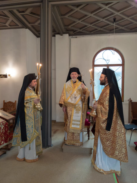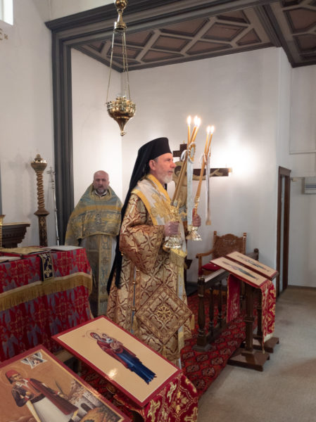 Στην Αρχιερατική Θεία Λειτουργία συμμετείχαν οι Πανοσιολ. Αρχιμανδρίτες π. Σωσίπατρος Στεφανούδης και π. Αλέξανδρος Λουκάτος, τους δε ύμνους έψαλλαν οι κ.κ. Παντελεήμων Σμυρνάκης, Αναστάσιος Γαλανόπουλος και Δημήτριος.
