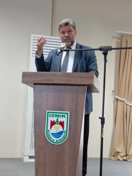 Την επομένη, Κυριακή 26 Οκτωβρίου, η αποστολή, η οποία εμπλουτίστηκε στο μεταξύ με την παρουσία του κ. Σπυρίδωνος Δουκάκη, Προέδρου του Ινστιτούτου Εκπαιδευτικής πολιτικής, και ομάδος συνεργατών του, μετέβη στην Νίκαια της Βιθυνίας, πόλη ιστορική, η οποία εσχάτως βρίσκεται στο προσκήνιο, καθώς κατά τό επί θύραις νέον έτος 2025 συμπληρώνονται 1700 έτη από της εκεί συγκλήσεως της Α’ Οικουμενικής Συνόδου της Εκκλησίας. Ο Δήμαρχος Νικαίας Βιθυνίας κ. Mehmet Kağan Usta υποδέχθηκε με θερμούς λόγους τους επισκέπτες στο Συνεδριακό Κέντρο του Δημαρχιακού Μεγάρου, το οποίο προθύμως παρεχώρησε για την πραγματοποίηση συνεδρίας με θέμα τις Οικουμενικές Συνόδους της Εκκλησίας και, πιο συγκεκριμένα, την σπουδαιότητα της 1ης εν Νικαία Συνόδου, με ομιλητή τον Σεβ. Μητροπολίτη Προύσης κ. Ιωακείμ.