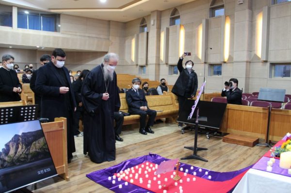 Επίσης την Παρασκευή 24 Νοεμβρίου ο Μητροπολίτης κ. Αμβρόσιος μαζί με κληρικούς της Ορθόδοξης Μητρόπολης Κορέας συμμετείχε σε εκδήλωση προσευχής και ειρηνικής πορείας κατά του πολέμου στην Ουκρανία, στην οποία πάλι ο ο π. Ρωμανός Kavchak διάβασε σχετική ομιλία του Αρχιεπισκόπου κ. Σεργέϊ.