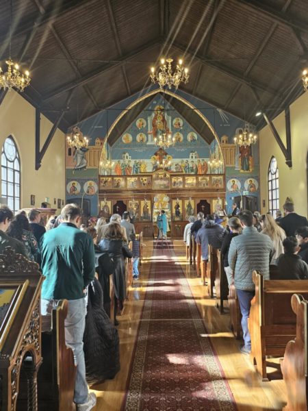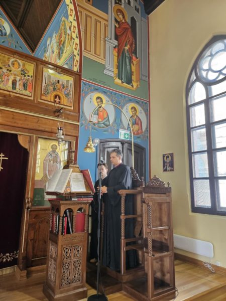 Μετά το πέρας της τε Θείας Λειτουργίας και της Δοξολογίας, άπαντες οι εκκλησιασθέντες μετέβησαν στις κάτωθεν του Μητροπολιτικού Ναού εγκαταστάσεις, όπου, με αφορμή την περάτωση της δευτέρας φάσεως των εργασιών αποκαταστάσεως και ανακαινίσεως της αιθούσης, ετελέσθη η ακολουθία του αγιασμού, ετιμήθη για την εθελοντική προσφορά της η κ. Nicole Konstante και προσεφέρθη παραδοσιακή φιλοξενία από το μέλος της ενορίας κ. Πέτρο Αράπη.