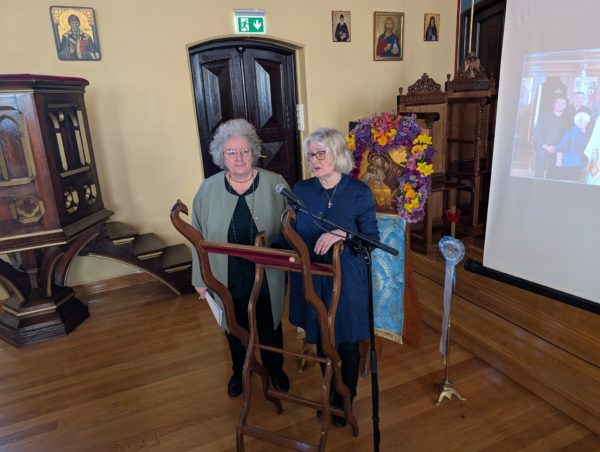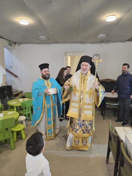 Μετά το πέρας της τε Θείας Λειτουργίας και της Δοξολογίας, άπαντες οι εκκλησιασθέντες μετέβησαν στις κάτωθεν του Μητροπολιτικού Ναού εγκαταστάσεις, όπου, με αφορμή την περάτωση της δευτέρας φάσεως των εργασιών αποκαταστάσεως και ανακαινίσεως της αιθούσης, ετελέσθη η ακολουθία του αγιασμού, ετιμήθη για την εθελοντική προσφορά της η κ. Nicole Konstante και προσεφέρθη παραδοσιακή φιλοξενία από το μέλος της ενορίας κ. Πέτρο Αράπη.