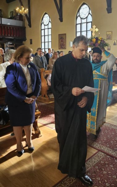 Προ της απολύσεως της Θείας Λειτουργίας, ετελέσθη, συμφώνως προς το τυπικόν της ημέρας, η ακολουθία της προσκυνήσεως του Τιμίου Σταυρού, ακολούθως δε και η Δοξολογία για την επικειμένη Εθνική εορτή. Τους ύμνους έψαλε ο Πρωτοψάλτης Μουσικολ. κ. Παναγιώτης Κατσίβαλης με μέλη της βυζαντινής χορωδίας του ως άνω ναού.