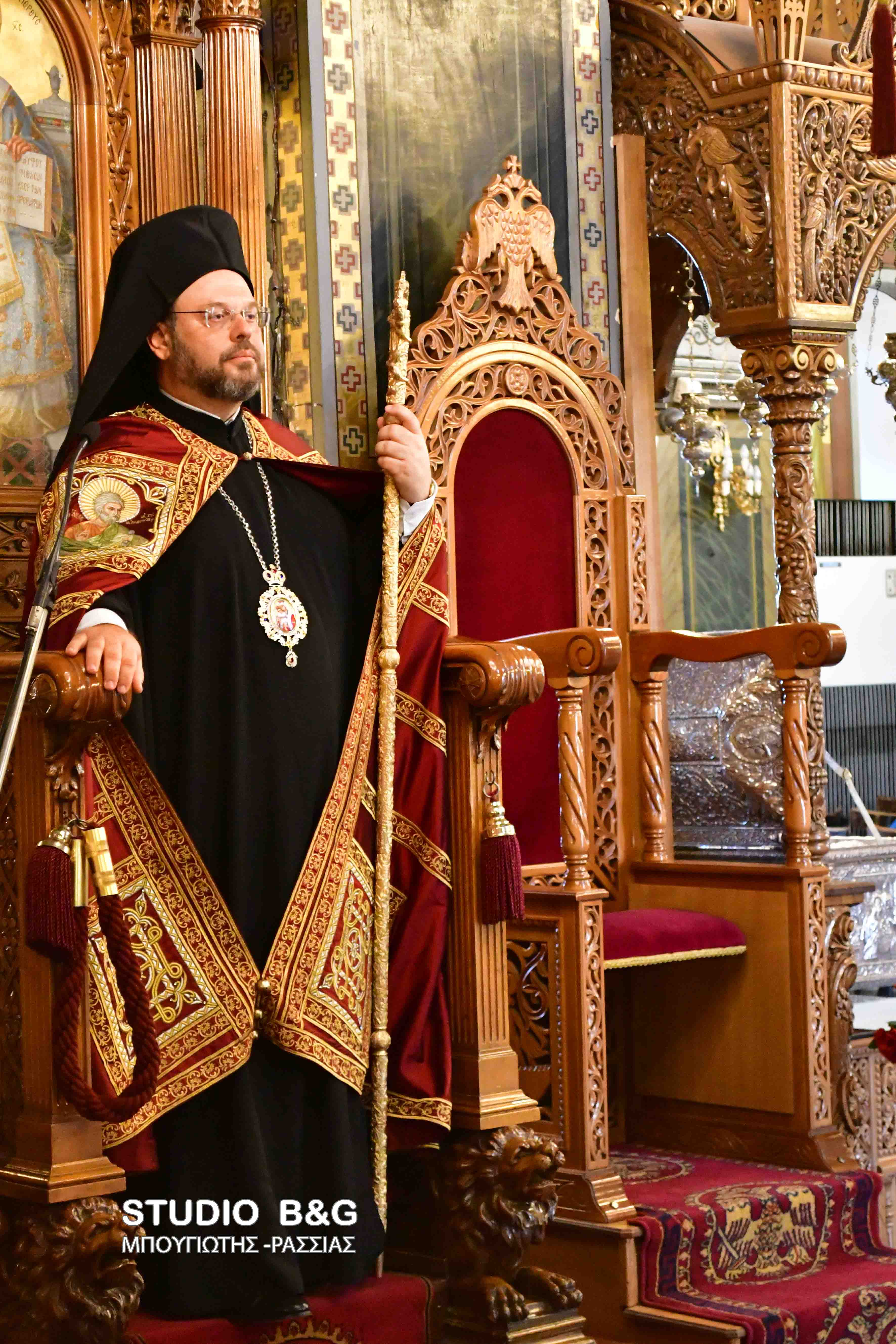 Ο Μητροπολίτης Ελβετίας ευχαρίστησε και τον οικείο Μητροπολίτη Αργολίδος Νεκτάριο που του έδωσε την άδεια να λειτουργήσει στον καθεδρικό Ιερό Ναό του Αγίου Πέτρου. Στο τέλος της θείας λειτουργίας ο εφημέριος του Ναού πρωτοπρεσβύτερος και πρόεδρος του ΙΣΚΕ π. Γεώργιος Σελλής αφού ευχαρίστησε τον Μητροπολίτη Ελβετίας για τη τιμή που έκανε να τελέσει τη θεία λειτουργία στον Ιερό Ναό του Αγίου Πέτρου στο Αργος του δώρισε εκ μέρους του εκκλησιαστικού συμβουλίου μία ποιμαντική ράβδο και ένα ρολόι σκαλισμένο με τη μορφή του Αγίου Πέτρου .