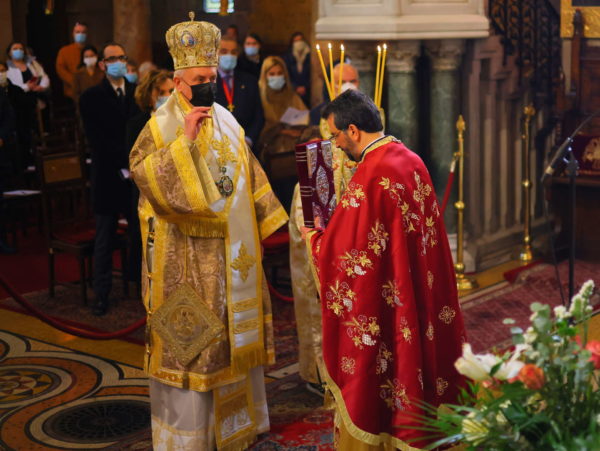 Μετά το πέρας της Θ. Λειτουργίας, τον Σεβασμιώτατο προσφώνησε ο Πατριαρχικός Επίτροπος κάνοντας μια εκτενή αναδρομή στο ποιμαντικό του έργο ως Ποιμενάρχου της Γαλλίας επί 18 έτη.