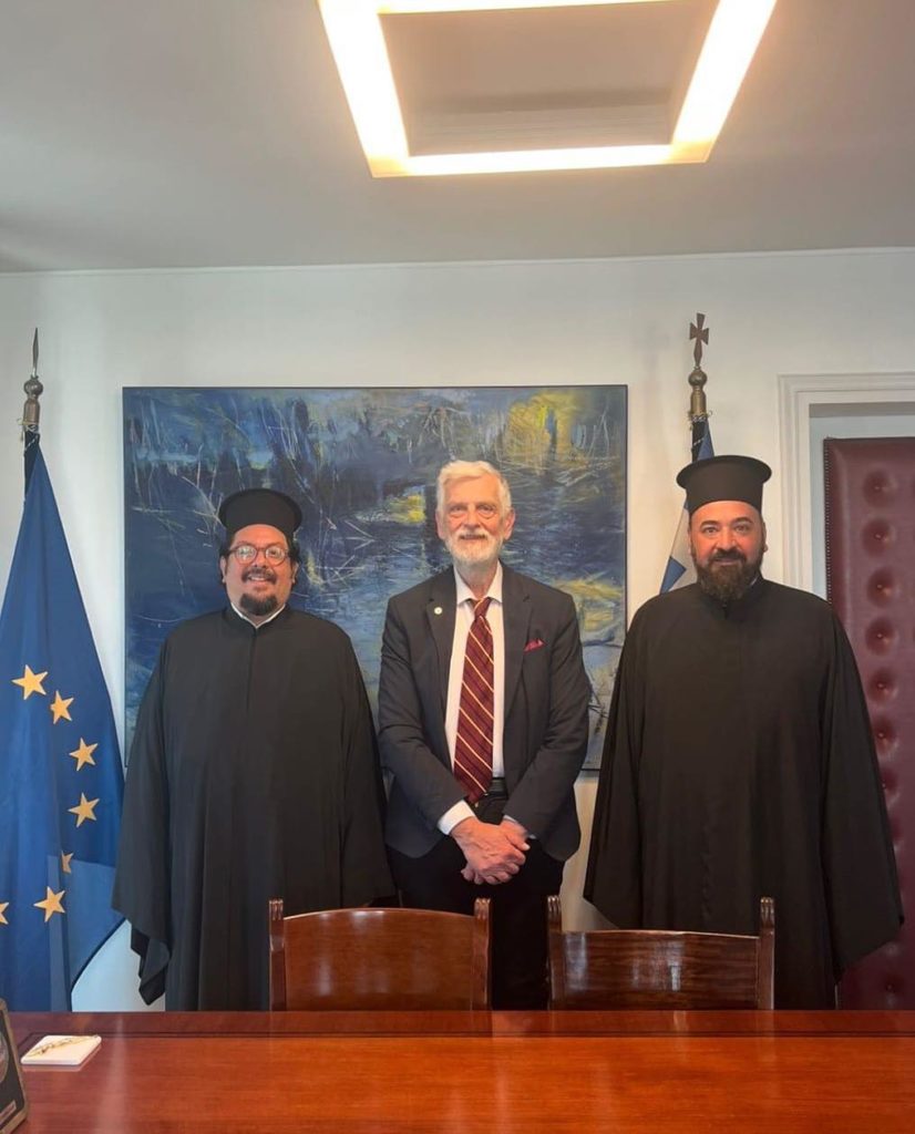Επίσης, η επίσκεψη στο Υπουργείο Εξωτερικών συμπεριελάμβανε συνάντηση με την Γενική Γραμματέα Απόδημου Ελληνισμού, Μάιρα Μυρογιάννη, με την οποία συζητήθηκαν θέματα που αφορούν τις Ελληνορθόδοξες κοινότητες της Νοτίου Αμερικής.