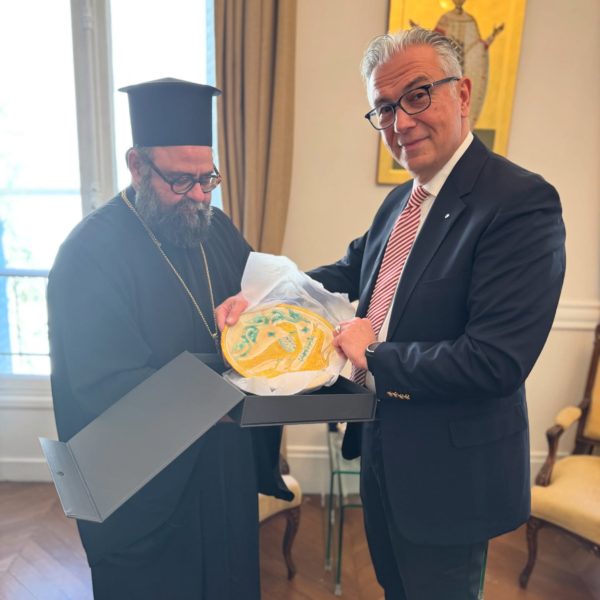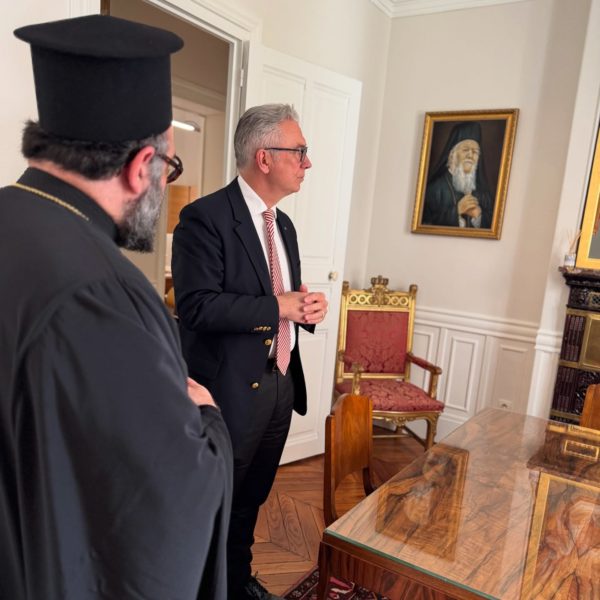 Στη συνάντηση που πραγματοποιήθηκε στον ιστορικό Καθεδρικό Ναό του Αγίου Στεφάνου, έδρα της Ελληνορθόδοξης Μητροπόλεως Γαλλίας, συζητήθηκαν οι πλούσιες και πολυεπίπεδες δράσεις της Μητρόπολης, τη στήριξη που παρέχει στο ποίμνιο, καθώς και για τα σύγχρονα ζητήματα που απασχολούν την ελληνορθόδοξη κοινότητα στη Γαλλία.