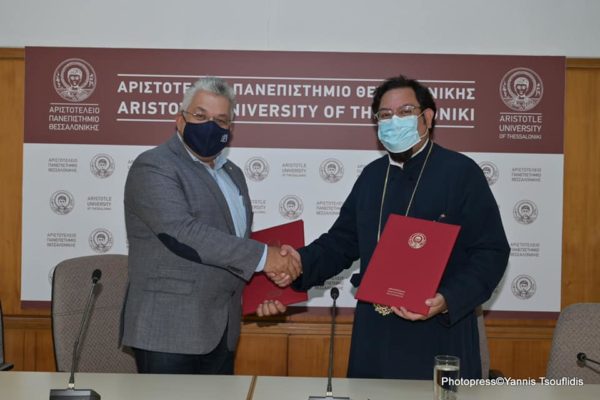 Μνημόνιο Επιστημονικής και Πολιτιστικής Συνεργασίας μεταξύ του Αριστοτέλειου Πανεπιστημίου Θεσσαλονίκης και της Ιεράς Μητροπόλεως Μπουένος Άϊρες και Νοτίου Αμερικής του Οικουμενικού Πατριαρχείου υπογράφηκε την Τετάρτη 8 Σεπτεμβρίου 2021, από τον Πρύτανη του ΑΠΘ, Καθηγητή Νικόλαο Γ. Παπαϊωάννου, και τον Σεβασμιώτατο Μητροπολίτη Μπουένος Άϊρες, Υπέρτιμο και Έξαρχο Νοτίου Αμερικής κ. Ιωσήφ, στην Πρυτανεία.