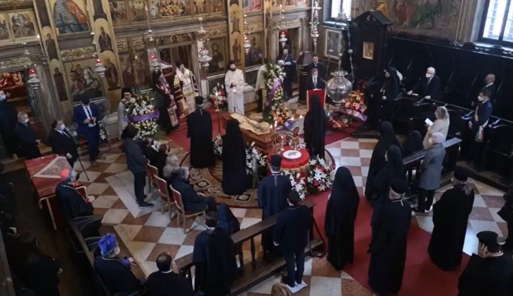 Ολοκληρώθηκε πριν από λίγο η εξόδιος ακολουθία του μακαριστού Μητροπολίτη Ιταλίας και Μελίτης κυρού Γενναδίου στον Ιερό Καθεδρικό Ναό του Αγίου Γεωργίου των Ελλήνων. Σε λίγο αναχωρεί η πομπή με το φέρετρό του στο Ελληνορθόδοξο Κοιμητήριο της Βενετίας, όπου θα γίνει η ταφή του.