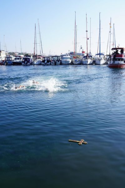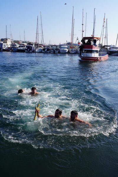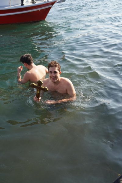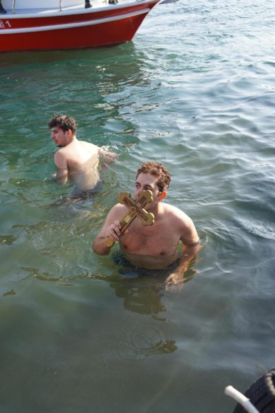 Μετά το πέρας της Θείας Λειτουργίας εν μέσω πλήθους πραγματοποιήθηκε η κατάδυσις του Τιμίου Σταυρού και ο Αγιασμός των υδάτων στην Θάλασσα του Μαρμαρά, υπό του ως άνω Αρχιερέως. Τον Τίμιο Σταυρό εκ της θαλάσσης ανέσυρε νέος Νικόλαος Ασλάνερ. Αξίζει να σημειωθεί, ότι την διοργάνωση καθώς και το προσφερθέν κέρασμα προς όλους είχε αναλάβει ο Δήμος Μεγαλουπόλεως Κωνσταντινουπόλεως.