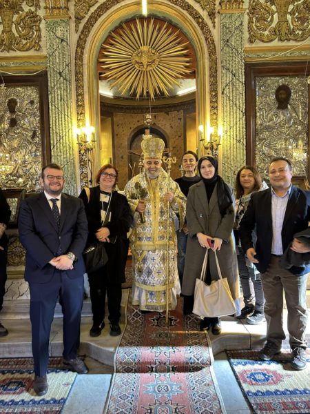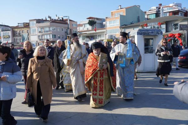 Στην συνέχεια, πραγματοποιήθηκε δεξίωση σε παρακείμενο του Ιερού Ναού εστιατόριο, όπου ο Σεβασμιώτατος καλωσόρισε τους παρευρισκομένους Ελληνιστί και Τουρκιστί, αναφέροντας, ότι το χαρμόσυνο μήνυμα της εορτής των Θεοφανείων δεν είναι μόνο διά του Ορθοδόξους αλλά είναι ημέρα χαράς προς όλα τα δόγματα.