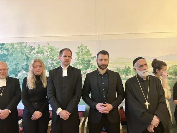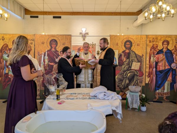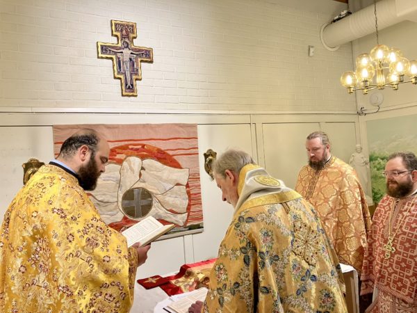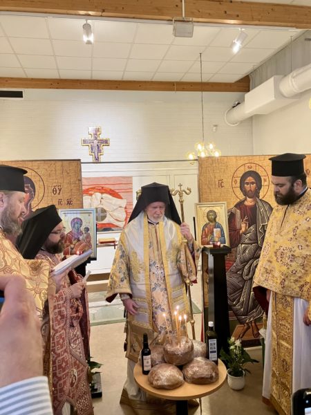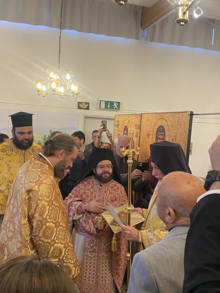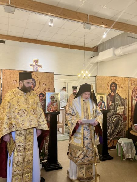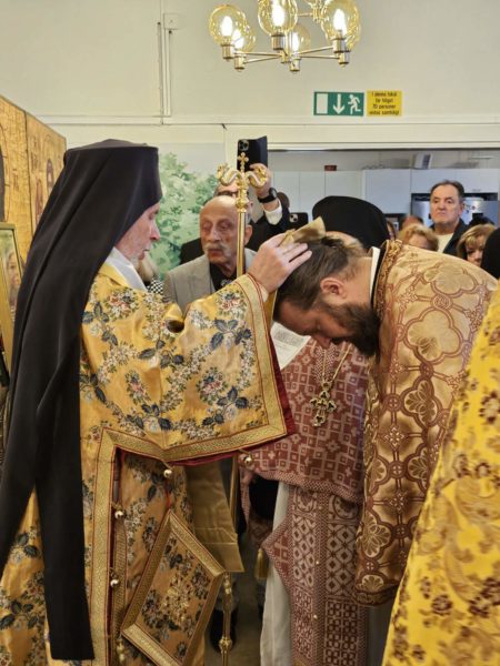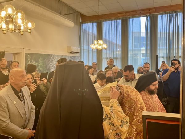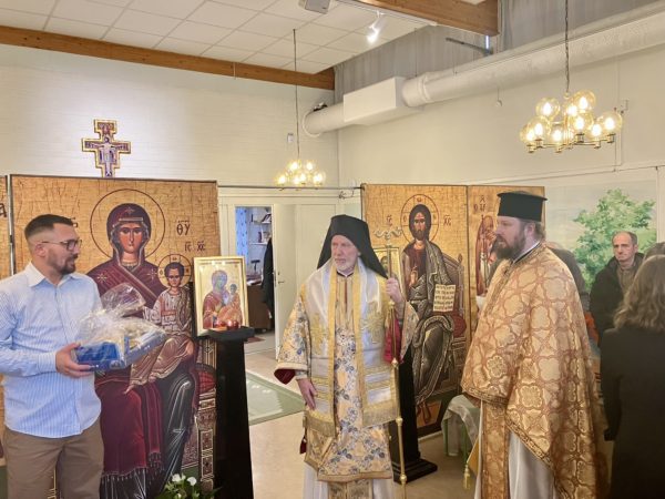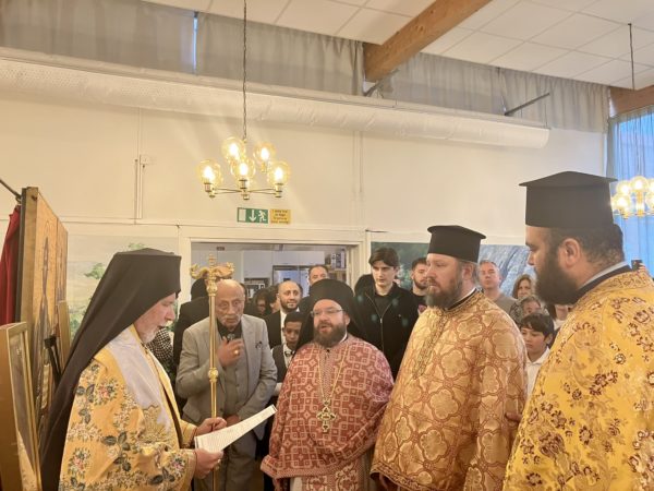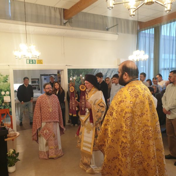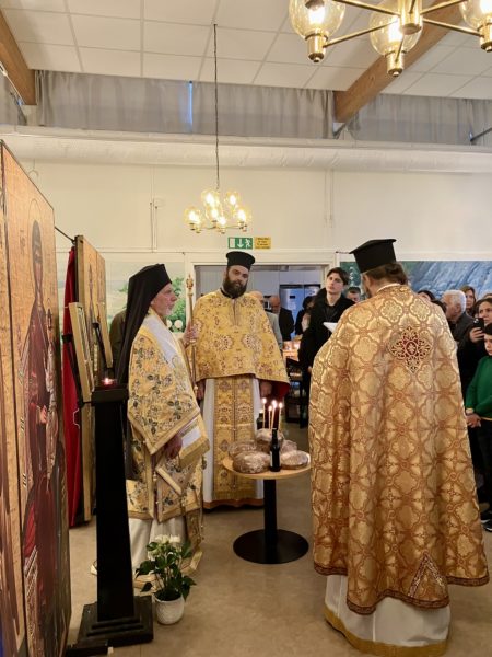 Ο Σεβασμιώτατος Μητροπολίτης Σουηδίας και πάσης Σκανδιναυΐας κ. Κλεόπας, συμπαραστατούμενος από τον Πανοσιολ. Αρχιμανδρίτη κ. Βαρθολομαίο Ιατρίδη, Εφημέριο του Καθεδρικού Ναού Αγίου Γεωργίου Στοκχόλμης, τον Αιδεσιμολ. Πρεσβύτερο κ. Βασίλειο Χαλλήλ, Κληρικό του Βικαριάτου του Πατριαρχείου Αντιοχείας εν Σουηδία, και τον Αιδεσιμολ. Πρεσβύτερο κ. Γεώργιο Αρβανιτίδη, ιερούργησε το πρωί του Σαββάτου, 26 Οκτωβρίου 2024, στη νεοσύστατη Ενορία της πόλεως Örebro της Σουηδίας, τιμωμένης επ’ ονόματι των Αγίων Δημητρίου και Νέστορος, τα θυρανοίξια της οποίας ετέλεσε στο τέλος της Θείας Λειτουργίας.