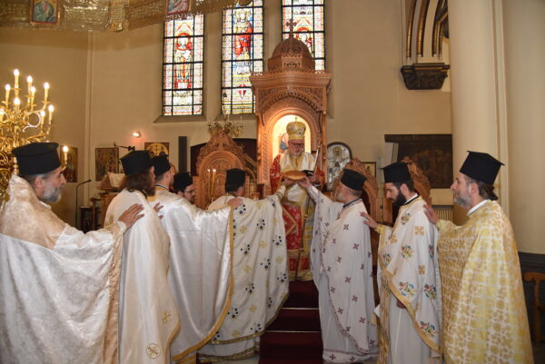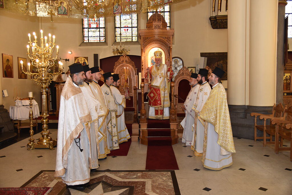 Στον Ιερό Μητροπολιτικό Ναό των Παμμεγίστων Ταξιαρχών Βρυξελλών τελέστηκε πανηγυρική αρχιερατική Θεία Λειτουργία προεξάρχοντος του εορτάζοντος ιεράρχου, με την συμμετοχή κληρικών της Μητροπόλεως και πλήθος κόσμου, οι οποίοι έσπευσαν να τιμήσουν τον ποιμενάρχη τους.