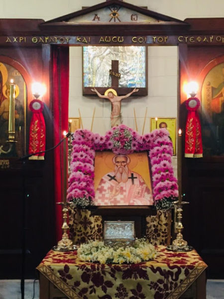 Λόγω των περιοριστικών μέτρων εξ αιτίας της πανδημίας του κορωνοϊού και της καθολικής απαγόρευσης κυκλοφορίας κάθε Σαββατοκύριακο, όλες οι Ιερές Ακολουθίες της ετησίας μνήμης του Αγίου τελέσθηκαν εις τον Ι. Ναόν Αγίας Φωτεινής, προεξάρχοντος του οικείου Ποιμενάρχου, Σεβ. Μητροπολίτου Σμύρνης κ. Βαρθολομαίου.