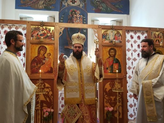 Τό Σάββατο τό ἑσπέρας χοροστάστησε στό Ἱερό Παρεκκλήσιον τῶν Ἁγίων Ἱεροθέου καί Στεφάνου στή Βουδαπέστη στήν ἀκολουθία τοῦ Ἑσπερινοῦ, ἐνῶ μετά τό πέρας αὐτῆς οἱ πιστοί, ἀλλά καί οἱ Πατέρες πού διακονοῦν τήν Ἐξαρχία μας, εἶχαν τήν εὐκαιρία νά ἐπικοινωνήσουν μέ τόν Ἐπίσκοπό τους καί νά λάβουν τήν εὐλογία του.