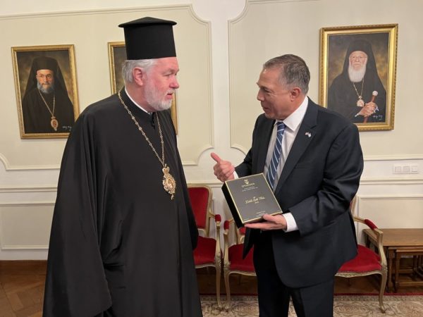 Ο πολιτειακός Γερουσιαστής της πολιτείας Rhode Island και Πρόεδρος της Παγκόσμιας Διακοινοβουλευτικής Ένωσης Ελληνισμού κ. Λεωνίδας Ραπτάκης και τα υπόλοιπα μέλη ενημέρωσαν τον Μητροπολίτη για τους σκοπούς και τις δραστηριότητες της Ενώσεως, καθώς και την απόλυτη στήριξη και προάσπιση των δικαίων του Οικουμενικού Πατριαρχείου στο παγκόσμιο γίγνεσθαι, με την προώθηση θεμάτων όπως η Θεολογική Σχολή της Χάλκης κ.α.
