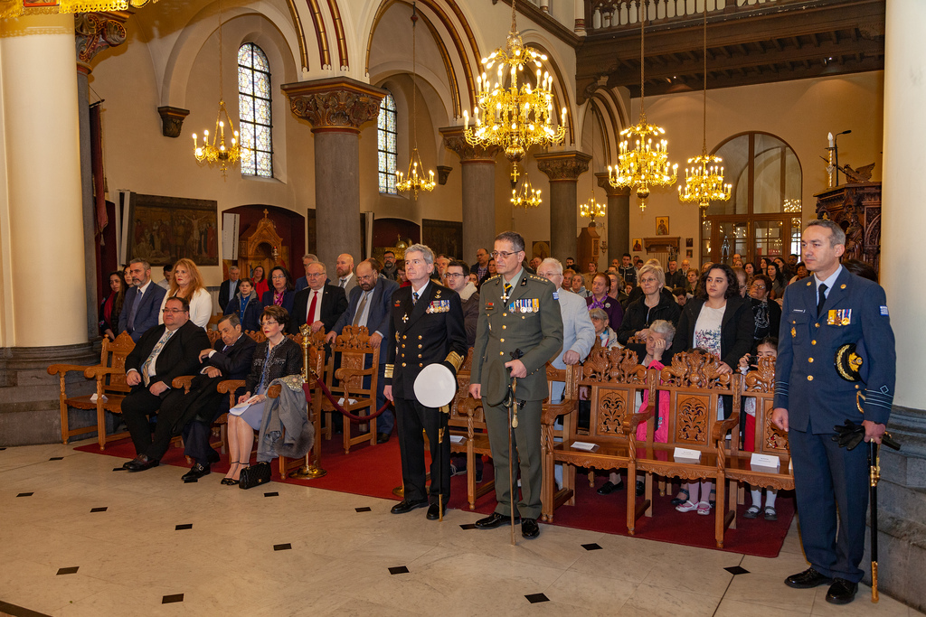 Το πέρας τη Θείας Λειτουργίας ακολούθησε επίσημη Δοξολογία για την Εθνική εορτή της Ελλάδας, μεταφερόμενη την πρώτη Κυριακή μετά την 25η Μαρτίου, με την παρουσία των διπλωματικών αρχών της Ελλάδος στο Βέλγιο με επικεφαλής της Πρέσβυ κα Ελευθερία Γαλαθιανάκη, και των στρατιωτικών αντιπρόσωπων της Ελλάδος παρά τω ΝΑΤΟ με επικεφαλής τον Ναύαρχο Κωνσταντίνο Καραγεώργη.