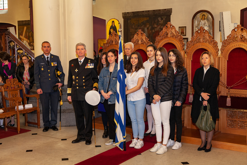 Το πέρας τη Θείας Λειτουργίας ακολούθησε επίσημη Δοξολογία για την Εθνική εορτή της Ελλάδας, μεταφερόμενη την πρώτη Κυριακή μετά την 25η Μαρτίου, με την παρουσία των διπλωματικών αρχών της Ελλάδος στο Βέλγιο με επικεφαλής της Πρέσβυ κα Ελευθερία Γαλαθιανάκη, και των στρατιωτικών αντιπρόσωπων της Ελλάδος παρά τω ΝΑΤΟ με επικεφαλής τον Ναύαρχο Κωνσταντίνο Καραγεώργη.