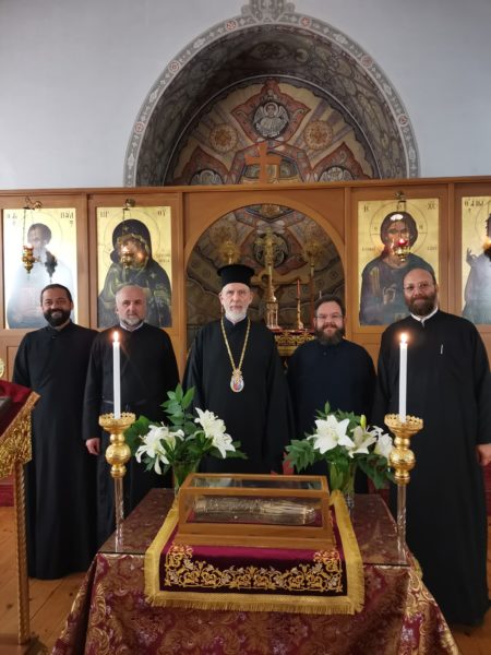 Ευγνώμονες ευχαριστίες εξέφρασε, επίσης, προς τον Σεβ. Μητροπολίτη Ύδρας, Σπετσών και Αιγίνης κ. Εφραίμ και στην Καθηγουμένη και το ηγουμενοσυμβούλιο της Ιεράς Μονής Παναγίας Τριάδος Αιγίνης, για τη συγκατάθεσή τους για την ολόθυμη ανταπόκρισή τους στο αίτημα της Επαρχίας του, καθώς και στον κομίσαντα το ιερό λείψανο, Πανοσιολ. Αρχιμανδρίτη κ. Δαμασκηνό Μούρτζη, ο οποίος πολλάκις στο παρελθόν εξυπηρέτησε τις πνευματικές και λειτουργικές ανάγκες διαφόρων ενοριών στη Σκανδιναυΐα.