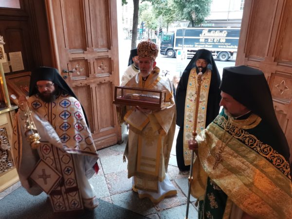 Την Πέμπτη, 1 Σεπτεμβρίου 2022 πραγματοποιήθηκε η υποδοχή της δεξιάς χειρός του Αγίου Νεκταρίου από τον Ποιμενάρχη κ. Κλεόπα στον Μητροπολιτικό Ναό Ευαγγελισμού της Θεοτόκου Όσλο, όπου ετελέσθη η Θεία Λειτουργία και αγιασμός, με την ευκαιρία της αρχής της Ινδίκτου και της ενάρξεως του νέου εκκλησιαστικού έτους, χοροστατούντος του ιδίου, με τη συμμετοχή των Πανοσιολ. Αρχιμανδριτών κ.κ. Δαμασκηνού Μούρτζη, Βαρθολομαίου Ιατρίδη και Αλεξάνδρου Λουκάτου και του Αιδ. Οικονόμου κ. Μaxime Lesage.