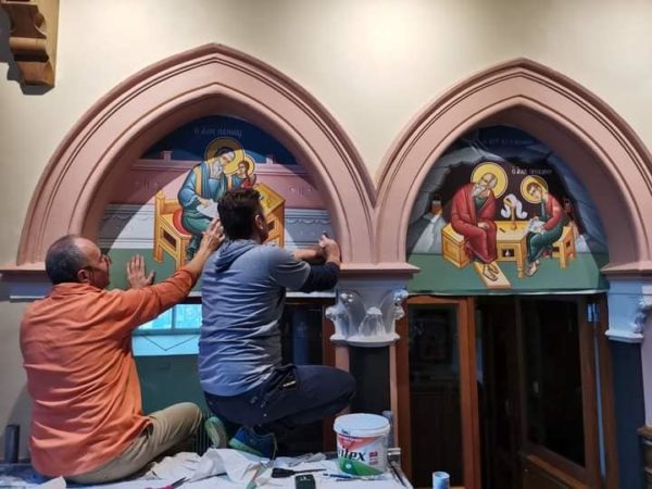 Πολύ πριν την ολοκλήρωση της αποκατάστασης του ναού (εξωτερική, το 2019 και εσωτερική, το 2020), ο Ποιμενάρχης απευθύνθηκε σε πρόσωπα που συνεισέφεραν με την τεχνογνωσία τους στην υλοποίηση του εν λόγω έργου και συγκεκριμένα στους αγιογράφους εξ Ιωαννίνων, αδελφούς Μιχαήλ και Δημήτριο Ανδρούτσο, οι οποίοι έστειλαν την προσφορά τους στις 21 Απριλίου 2017 και τις πρώτες μακέτες με τις παραστάσεις των αγίων στις 26 Απριλίου του ιδίου έτους.