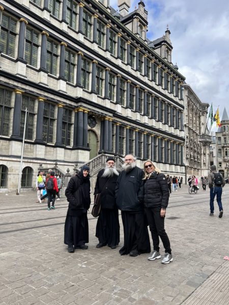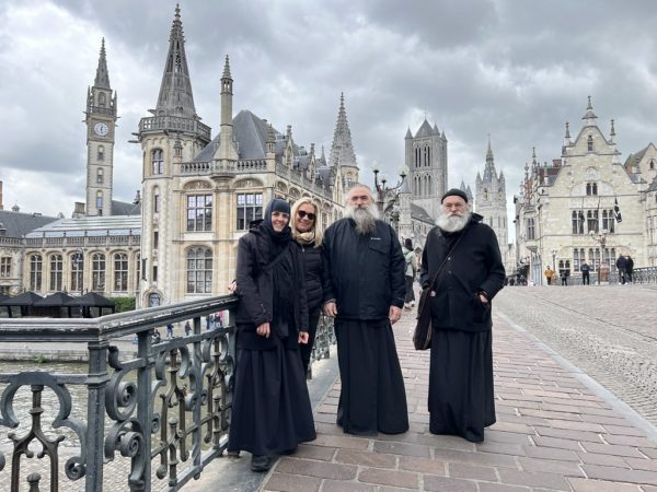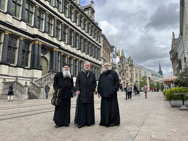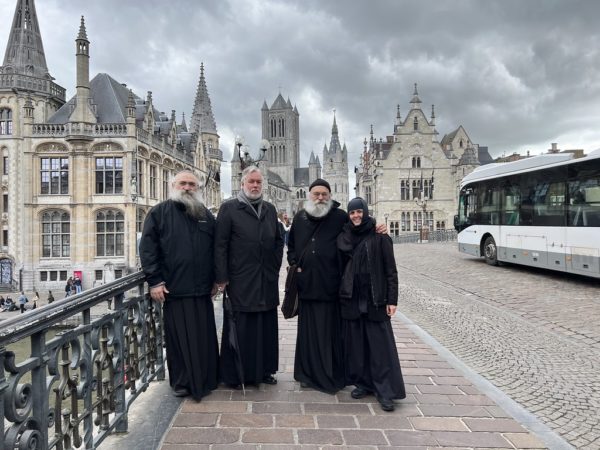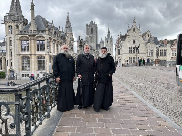 Στην συνέχεια ο Καθηγούμενος και η συνοδεία του μετέβησαν στις Βρυξέλλες όπου τους υποδέχτηκε ο Σεβασμιώτατος Μητροπολίτης Βελγίου και Έξαρχος Κάτω Χωρών και Λουξεμβούργου κ. Αθηναγόρας, στην έδρα της Μητροπόλεως, ενώ την επομένη, το πρωί της 25ης Απριλίου, είχαν την ευκαιρία να επισκεφθούν την Μεσαιωνική πόλη της Γάνδης και να ξεναγηθούν στον Καθεδρικό Ναό της Ρωμαιοκαθολικής Εκκλησίας του Αγίου Μπαβώνου, όπου εκτίθεται το περίφημο έργο «Ο Αμνός του Θεού» (L’ Agneau mystique) του σπουδαίου Φλαμανδού ζωγράφου Jan van Eyck.