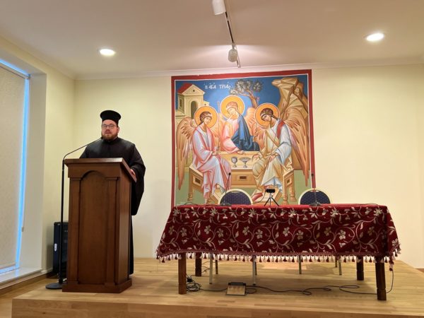 Το απόγευμα της ίδιας ημέρας στα πλαίσια του κύκλου ομιλιών «Ορθόδοξος Λόγος», στο Ορθόδοξο Κέντρο Ambiorix, ο Καθηγούμενος Βαρθολομαίος ανέπτυξε το θέμα «Η χαρά της Αναστάσεως». Την επομένη 26η Απριλίου επισκέφθηκε την πόλη της Λιέγης και την εκεί Ορθόδοξη Ενορία της Αγίας Βαρβάρας και στην συνέχεια αναχώρησε με την συνοδεία του για την Ελλάδα.