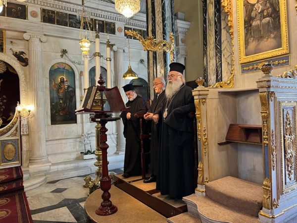 Στο τέλος της Προηγιασμένης Θείας Λειτουργίας αντάλλαξαν σύντομες προσφωνήσεις και αντιφωνήσεις μεταξύ των δύο Ιεραρχών. Ο Σεβασμιώτατος ευχαρίστησε και επαίνεσε την συμπαράσταση και το ενδιαφέρον που επιδεικνύει η Εκκλησία της Κύπρου προς την Μητέρα Εκκλησία.
