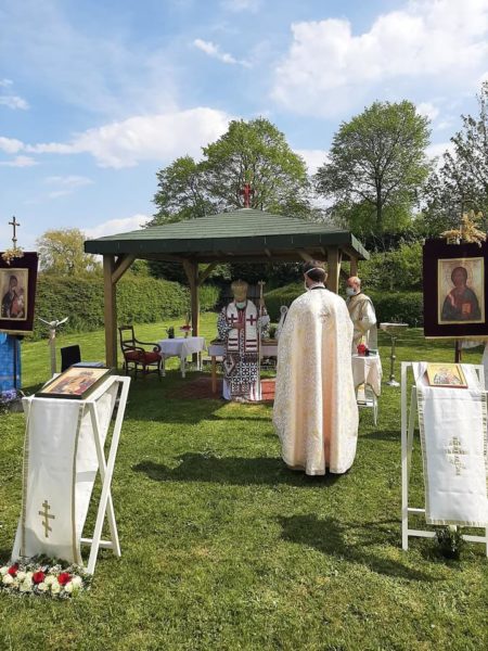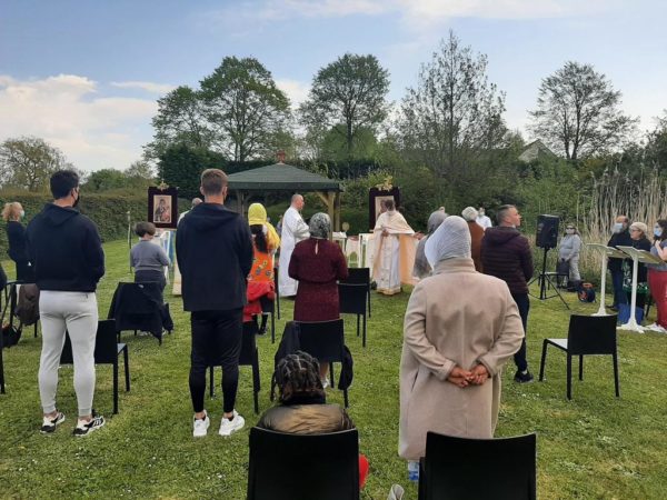 Την Κυριακή του Θωμά, 9 Μαΐου 2021, ο Θεοφιλέστατος Επίσκοπος Απολλωνιάδος κ. Ιωακείμ, Βοηθός Επίσκοπος του Σεβασμιωτάτου Μητροπολίτου Βελγίου κ. Αθηναγόρου, τέλεσε την Θεία Λειτουργία στην Ενορία του Αγίου Αμάντου στο Kortrijk υπαίθρια, τηρουμένων όλων των περιορισμών και των μέτρων προστασίας για την αποφυγή της εξάπλωσης της πανδημίας του κορωνοϊού που ισχύουν στο Βέλγιο και σύμφωνα με το νέο πρωτόκολλο του Υπουργείου Δικαιοσύνης, στο οποίο υπάγονται οι θρησκείες στο Βέλγιο, βάση του οποίου υπάρχει η δυνατότητα τέλεσης της Θείας Λειτουργίας υπαίθρια, στον αύλειο χώρο του ναού.