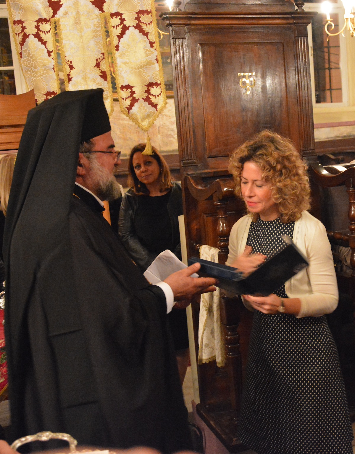 Μετά τον εσπερινό, στον οποίο παρέστησαν οι Μητροπολίτες Γέρων Δέρκων Απόστολος, Μυριοφύτου και Περιστάσεως Ειρηναίος, Ικονίου Θεόληπτος, Καλλιουπόλεως και Μαδύτου Στέφανος, Προύσης Ελπιδοφόρος, Αδριανουπόλεως Αμφιλόχιος, οι Επίσκοποι Χριστουπόλεως Μακάριος, Αλικαρνασσού Αδριανός, Ερυθρών Κύριλλος, η Γενική Πρόξενος της Ελλάδος στην Πόλη Γεωργία Σουλτανοπούλου, Άρχοντες Οφφικιάλιοι και πλήθος πιστών, ο Οικουμενικός Πατριάρχης απένειμε, εξ ονόματος του Πατριάρχη Ιεροσολύμων Θεοφίλου, το οφφίκιο του Σταυροφόρου του Τάγματος του Παναγίου Τάφου στο δραστήριο μέλος της Ομογενείας και Νιχωρίτη κ.Παντελεήμονα Βίγκα, Άρχοντα Μ.Χαρτοφύλακα του Οικουμενικού Πατριαρχείου και Πρόεδρο της Κοινότητας Παναγίας Κουμαριωτίσσης Νεοχωρίου.