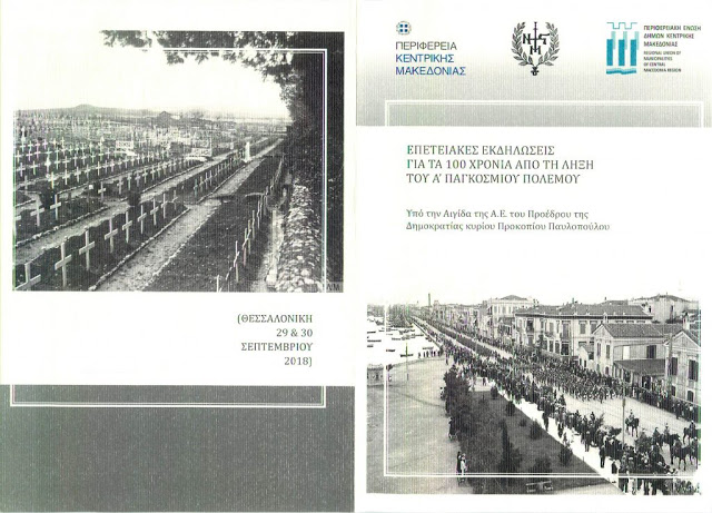 Εκδηλώσεις μνήμης επί τη συμπληρώσει εκατό χρόνων από την Ανακωχή που σηματοδότησε τη λήξη του Α’ Παγκοσμίου Πολέμου διοργανώνει η Ιερά Μητρόπολη Νεαπόλεως και Σταυρουπόλεως σε συνεργασία με την Περιφέρεια Κεντρικής Μακεδονίας και την Περιφερειακή Ένωση Δήμων.