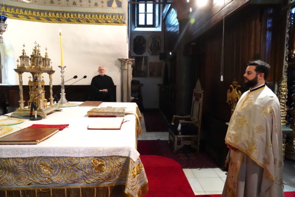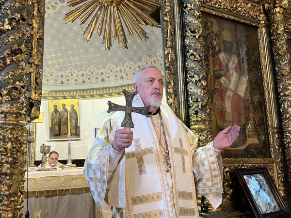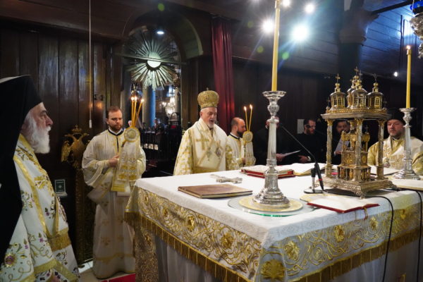 Της Θείας Λειτουργίας προεξήρχε ο Σεβασμιώτατος Μητροπολίτης Γέρων Χαλκηδόνος κ. Εμμανουήλ, και συλλειτούργησαν οι Σεβασμιώτατοι Μητροπολίτες Μιλήτου κ. Απόστολος και Προύσης κ. Ιωακείμ.