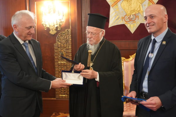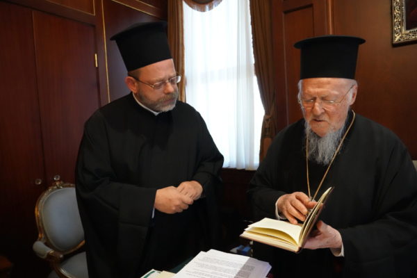 Ο Οικουμενικός Πατριάρχης κ.κ. Βαρθολομαίος δέχθηκε σε ακρόαση τον Σεβ. Μητροπολίτη Σελευκείας κ. Θεόδωρο, Καθηγητή της Πατριαρχικής Ανωτάτης Εκκλησιαστικής Ακαδημίας Κρήτης (Π.Α.Ε.Α.Κ.), ο οποίος του επέδωσε, εκ μέρους του Προέδρου και των μελών του Ακαδημαϊκού Συμβουλίου αυτής, τον “Αφιερωματικό Τόμο επί τη πεντηκονταετία Αρχιερατείας του Οικουμενικού Πατριάρχου Βαρθολομαίου Α’”.