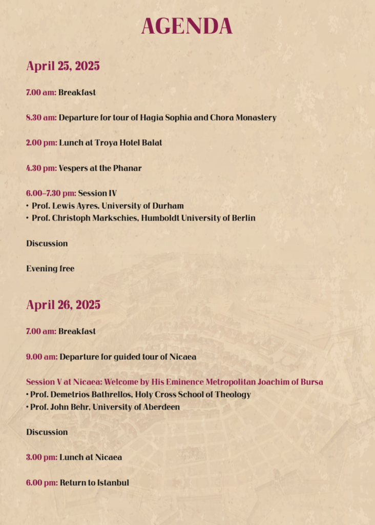 Μεταξύ των επισήμων εορταστικών εκδηλώσεων, με τις οποίες το Οικουμενικό Πατριαρχείο έχει προγραμματίσει να τιμήσει την 1700η επέτειο της Α´ Οικουμενικής Συνόδου, συμπεριέλαβε και την διεξαγωγή του Ακαδημαϊκού Συμποσίου, που θα λάβει χώρα στην Πόλη και τη Νίκαια, στις 24–26 Απριλίου 2025.