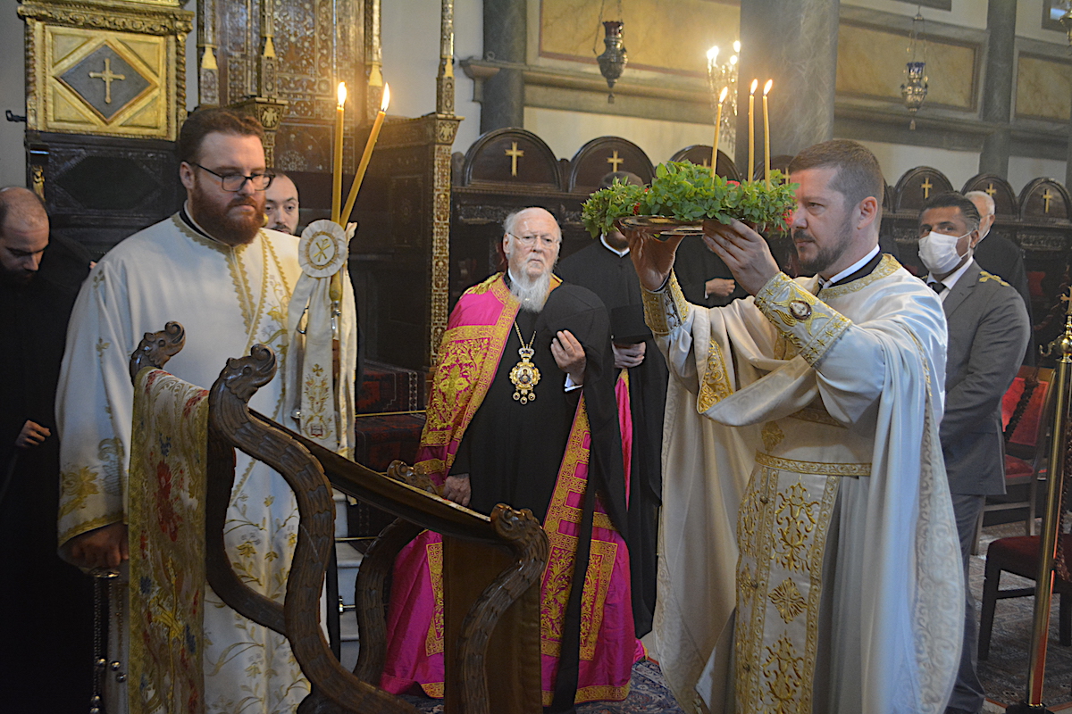 Η Α.Θ. Παναγιότης ο Οικουμενικός Πατριάρχης κ.κ. Βαρθολομαίος χοροστάτησε κατά τη Θεία Λειτουργία που τελέστηκε την Δευτέρα, 14 Σεπτεμβρίου 2020, σε συγχοροστασία με τους Σεβ. Μητροπολίτες Φιλαδελφείας κ. Μελίτωνα, Μύρων κ. Χρυσόστομο, Ικονίου κ. Θεόληπτο, Καλλιουπόλεως και Μαδύτου κ. Στέφανο και Κυδωνιών κ. Αθηναγόρα.