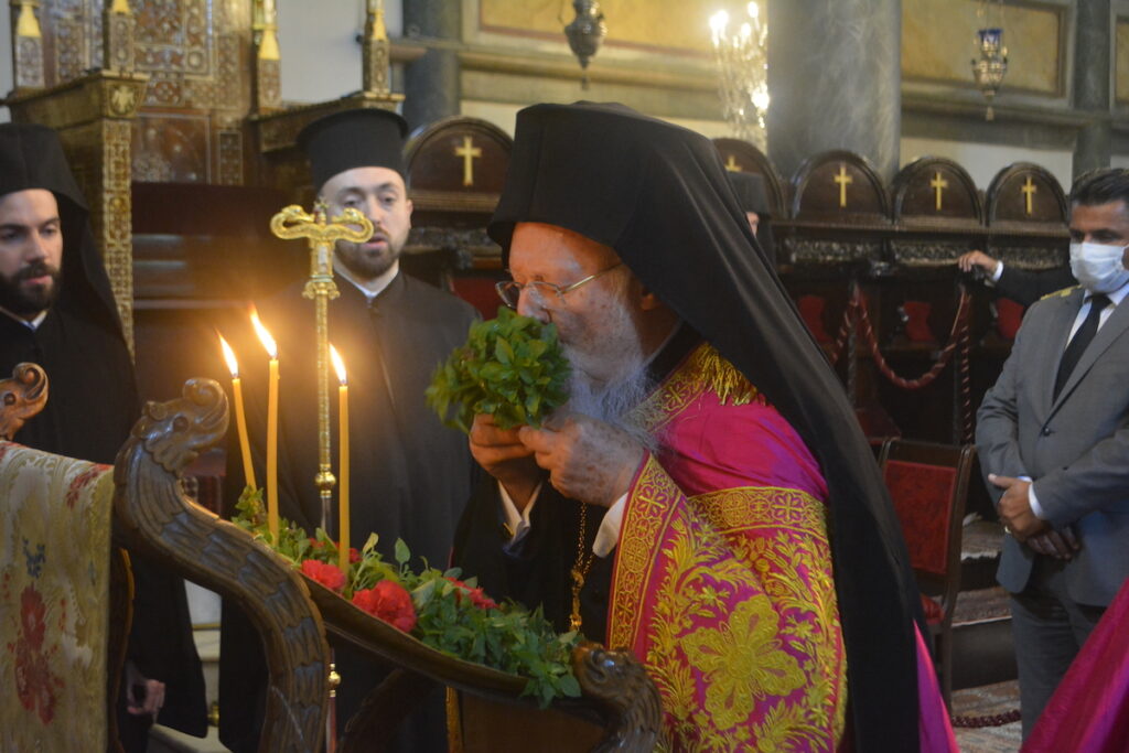 Η Α.Θ. Παναγιότης ο Οικουμενικός Πατριάρχης κ.κ. Βαρθολομαίος χοροστάτησε κατά τη Θεία Λειτουργία που τελέστηκε την Δευτέρα, 14 Σεπτεμβρίου 2020, σε συγχοροστασία με τους Σεβ. Μητροπολίτες Φιλαδελφείας κ. Μελίτωνα, Μύρων κ. Χρυσόστομο, Ικονίου κ. Θεόληπτο, Καλλιουπόλεως και Μαδύτου κ. Στέφανο και Κυδωνιών κ. Αθηναγόρα.
