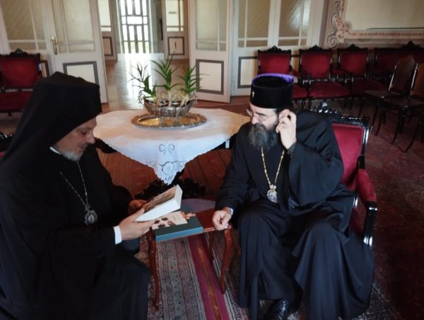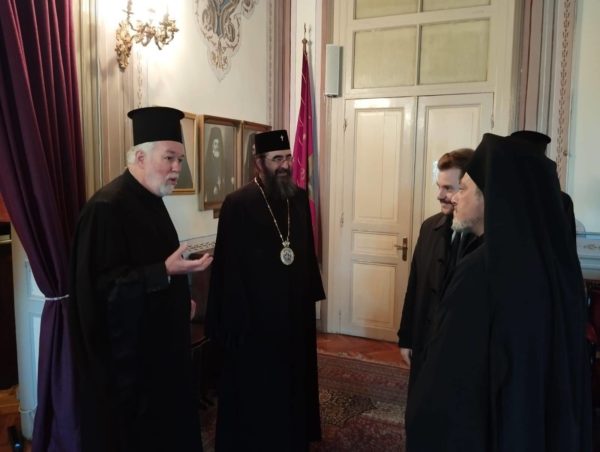 Η αντιπροσωπεία έγινε δεκτή από τον Καθηγούμενο, Θεοφιλέστατο Επίσκοπο Αραβισσού κ. Κασσιανό στο Μέγα Συνοδικό της Σχολής.