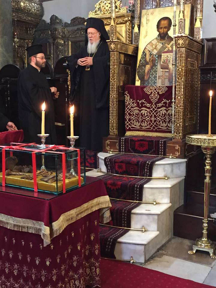 Στον σολέα του Πατριαρχικού Ναού τίθενται προς προσκύνησιν υπό των πιστών τα λείψανα του μεγάλου ιεράρχου της Κωνσταντινουπόλεως, τα οποία, μαζί με τα λείψανα του Αγίου Γρηγορίου του Θεολόγου, επέστρεψαν στην Πόλη από τη Ρώμη στις 27 Νοεμβρίου 2004, χάρις στις ενέργειες του διαδόχου των αγίων ιεραρχών σημερινού Οικουμενικού Πατριάρχου Βαρθολομαίου.
